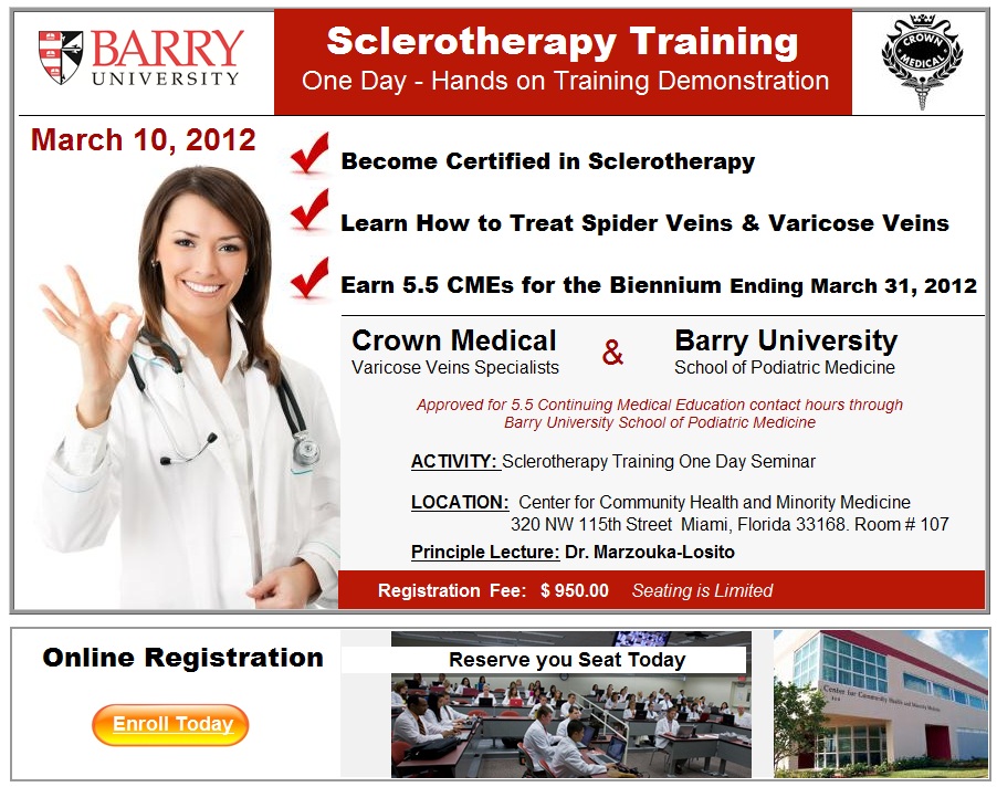 In order to provide podiatrist with the tools to effectively diagnose and treat varicose veins and spider veins Dr. Marzouka-Losito and Crown Medical developed Sclerotherapy Techniques for Podiatrist a practical step-by-step protocol